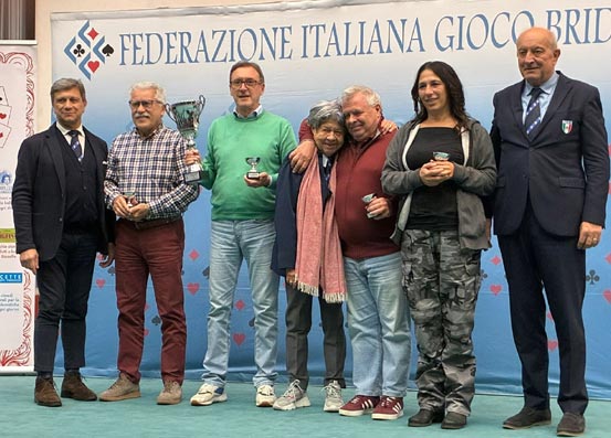 Nella competizione a squadre sono stati affiancati da una coppia di giovani ragazze di Siracusa, Aurelia Corso e Giorgia Di Luciano. Complimenti ragazzi. Siete il futuro del bridge!!!